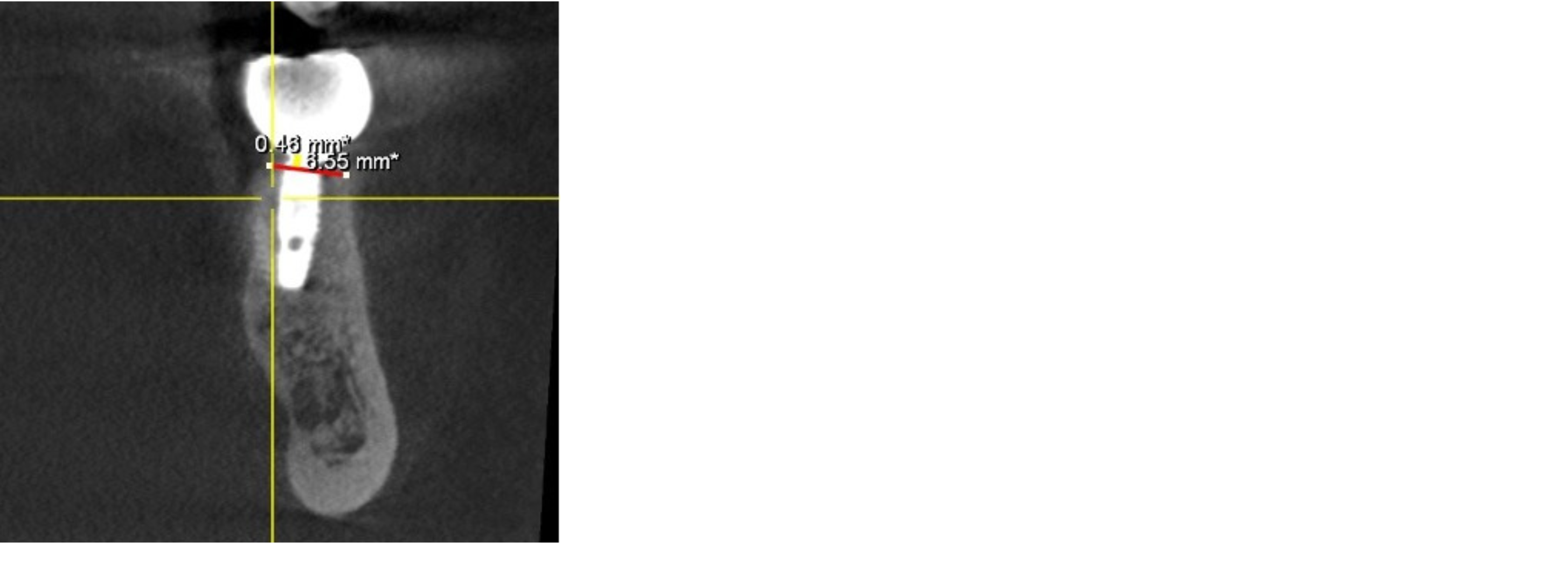 Abbildung 2: Diese CBCT-Aufnahme wurde 3 Monate nach der Implantatinsertion angefertigt. Sie zeigt die Messung der krestalen Knochenhöhe nach 3 Monaten