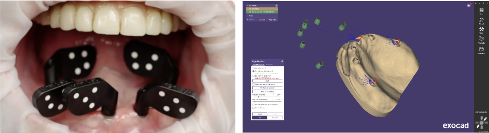 Mit der Photogrammetrie-Technologie können Implantat- und Multi-Unit-Positionen in drei Dimensionen erfasst werden. In Kombination mit dem intraoralen Scannen, bei dem Details des Weichgewebes erfasst werden, bietet diese Technik einen umfassenden Überblick, der für die Gestaltung präziser und gut sitzender Restaurationen in ALL-on-X-Fällen unerlässlich ist. Die Kombination dieser Technologien gewährleistet ein optimales Design und eine optimale Funktionalität, was zu verbesserten Patientenergebnissen führt.