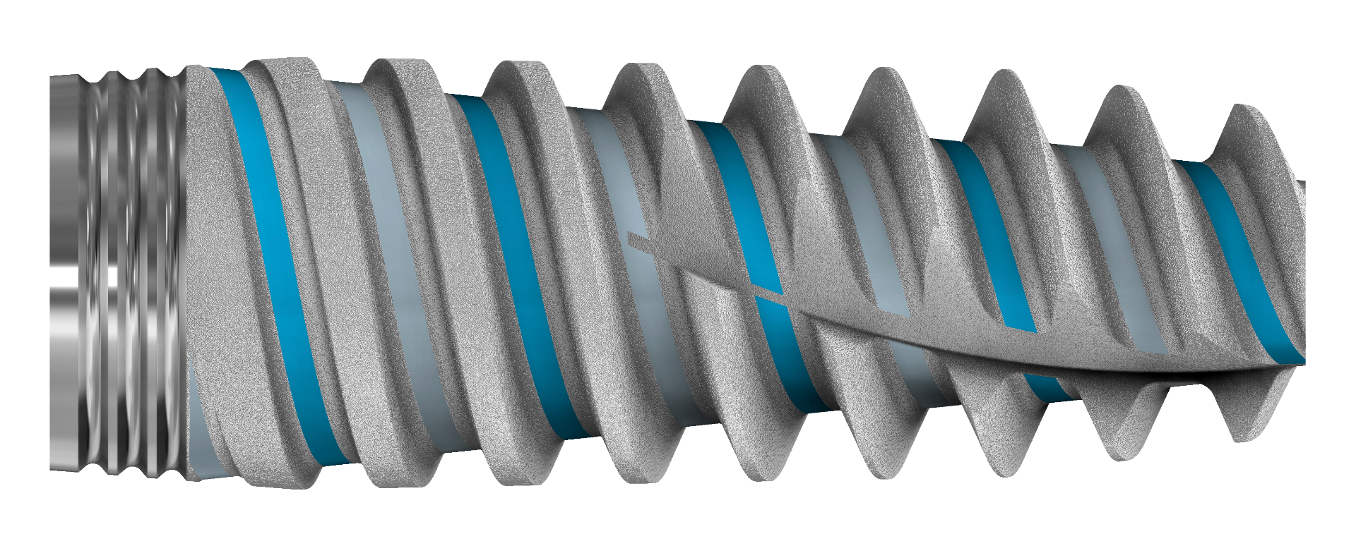 - Ein variables Gewinde verbessert die Stabilität bei der Sofortplatzierung.