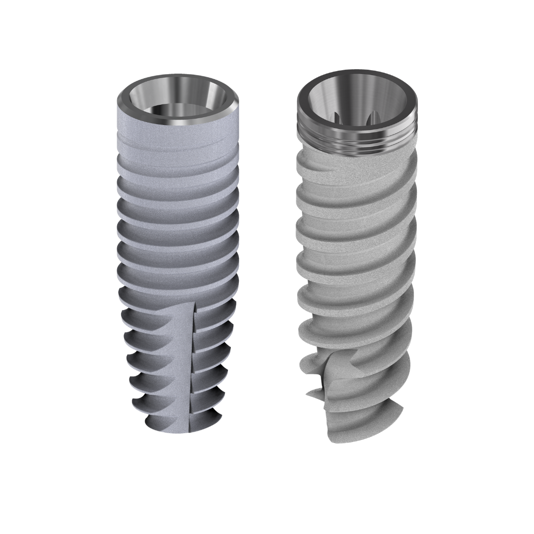 Weitere, ebenso relevante Details sind: das Design des Gewindes und der Spulen, der Implantatkragen und die Verbindung, die Maße und die Form des Implantats sowie die angewandten Oberflächenbehandlungen (Sandstrahlen und Säureätzung).