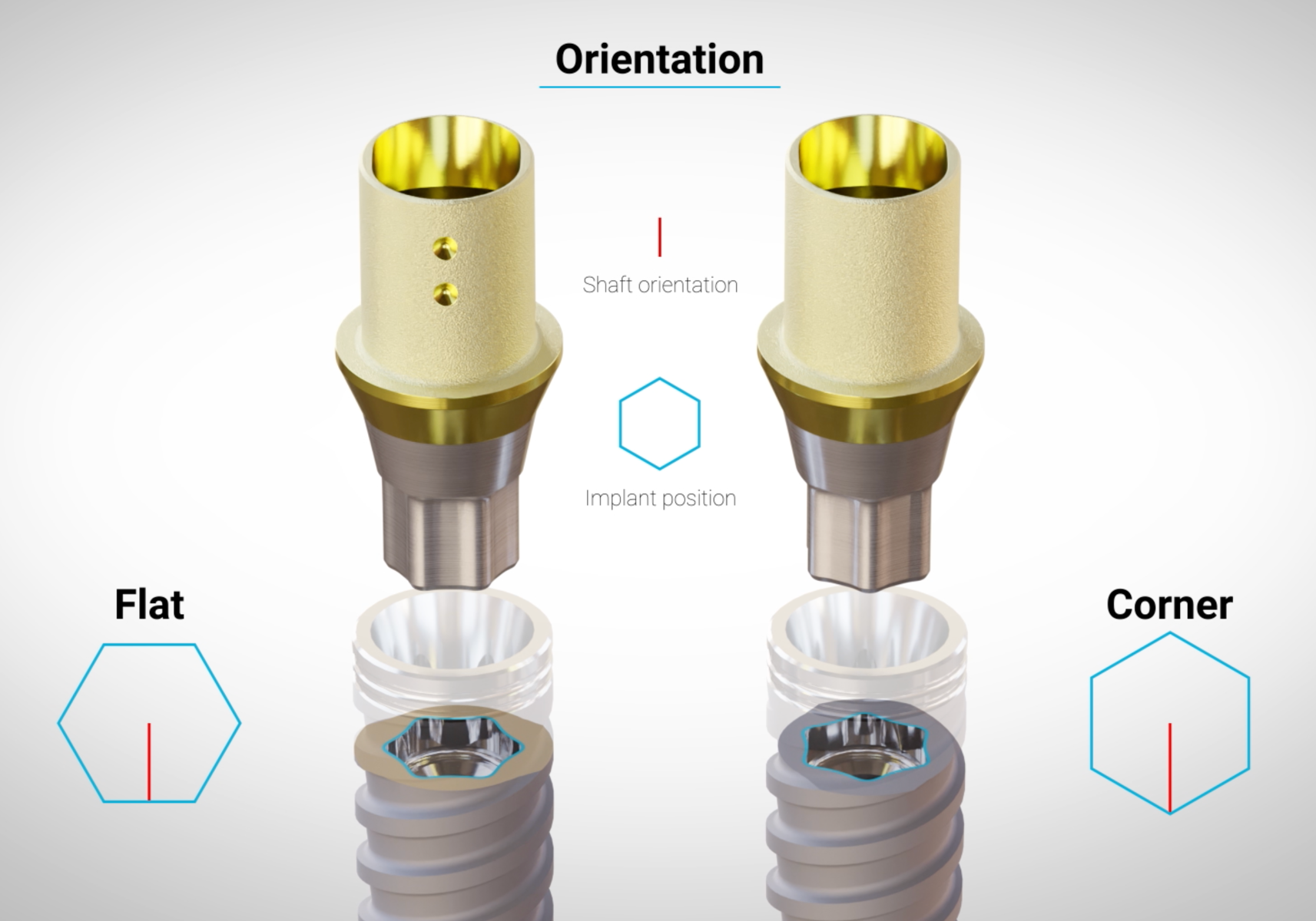 The ELLIPTIBase® elliptical shape is offered both oriented to the flat surface or the corner of the implant connection, thus adapting to its final positioning.