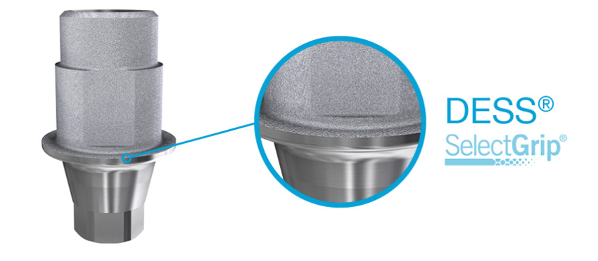 DESS® SelectGrip® Surface offers 500% more bonding retention than an untreated surface. This is achieved through a sandblasting treatment applied during the manufacturing process, resulting in a flawless finish without risk for damages to critical surfaces that also preserves a clean gingival area, an achievement almost impossible to get in a laboratory manual procedure.