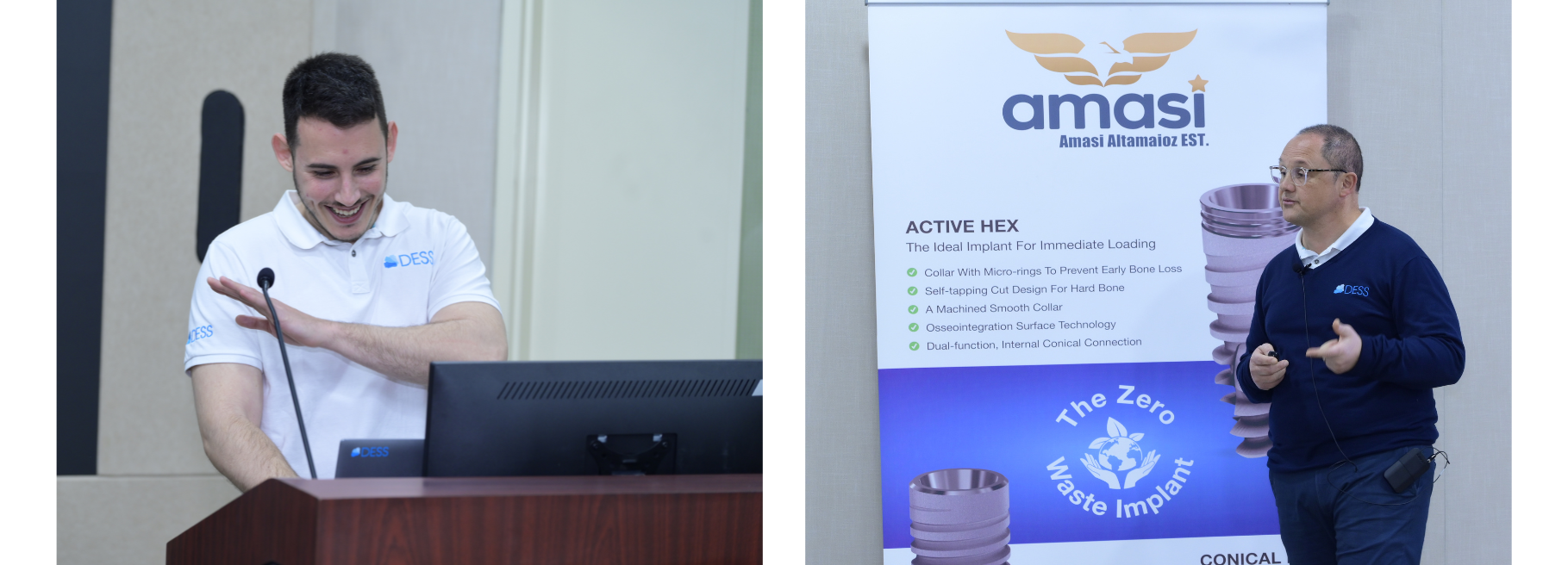 - DESS Implant Systems Presentation: David Cuervo introduced attendees to the design and functionality of DESS Implants, ACTIVE HEX and CONICAL BLT. He highlighted how these implants are fully compatible with leading implant systems NobelActive® and Straumann® Bone Level, offering clinicians versatility and reliability.