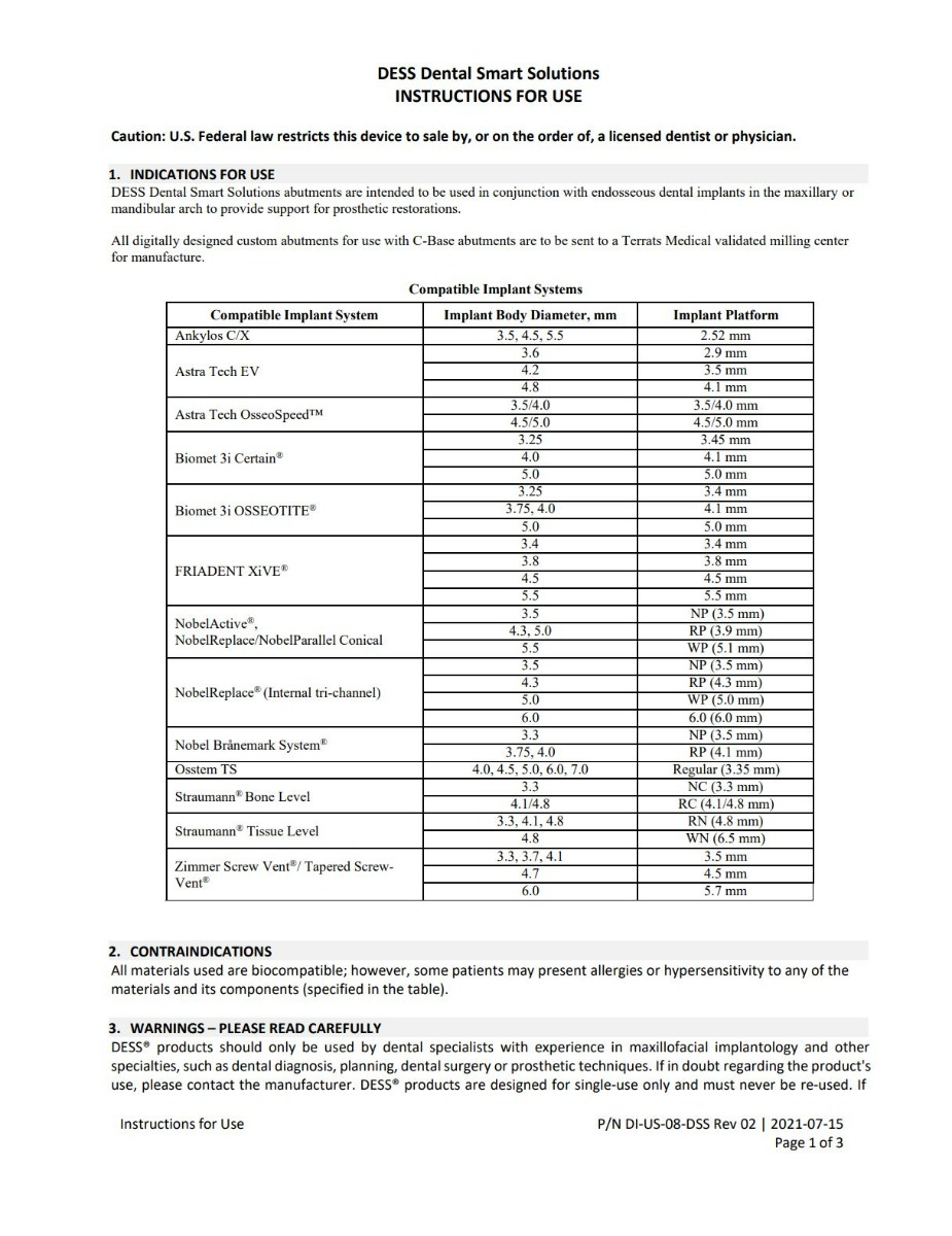 Instructions for USE FDA-PNP Premilled and Ti bases