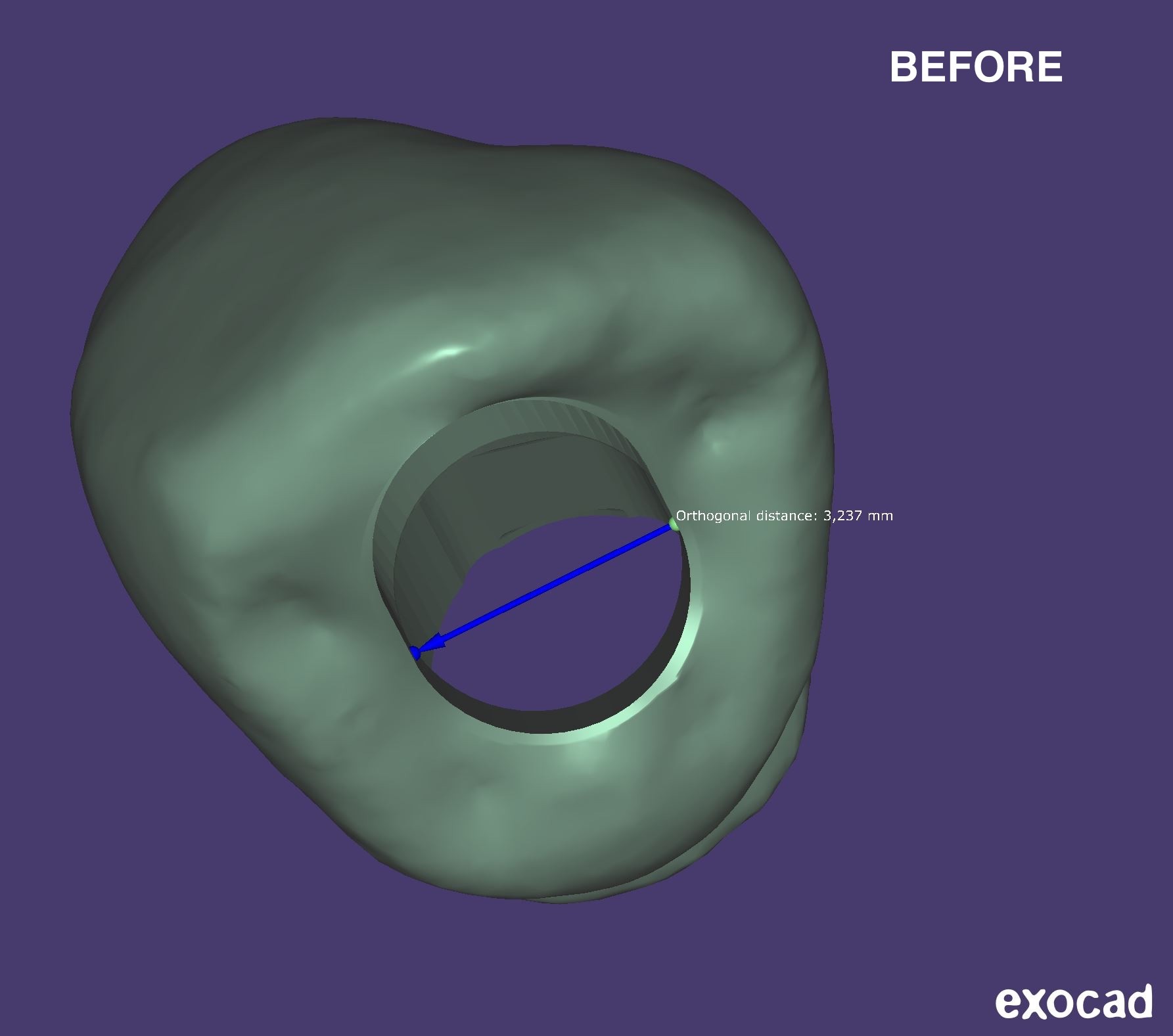 En DESS® siempre estamos mejorando nuestras librerías de acuerdo a las necesidades de nuestros clientes. Siguiendo esta idea, hemos reducido un 25% el agujero de inserciónd del tornillo de ANGLEBase®, nuestra solución angulada, en la librería Exocad.